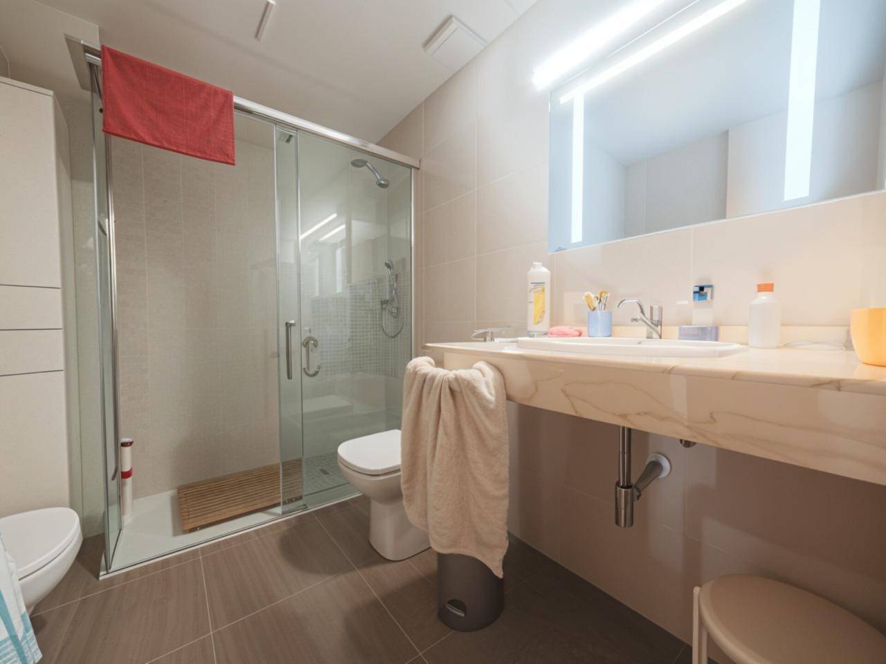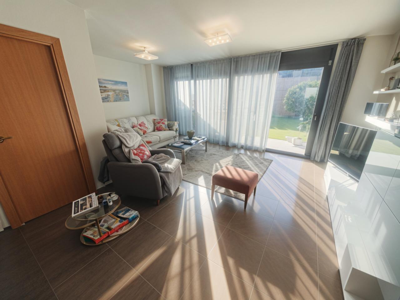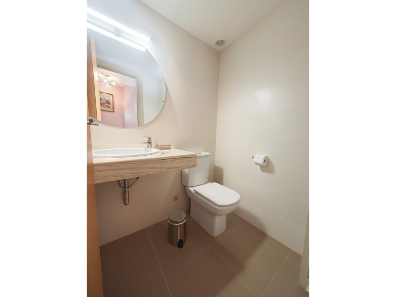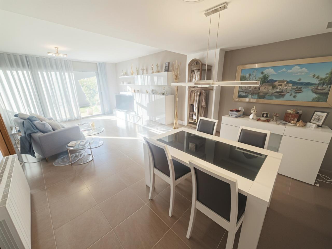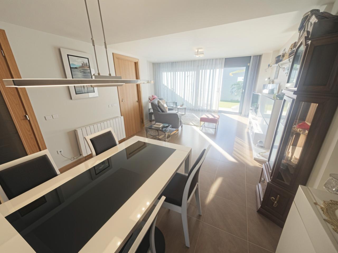 - Primera planta amb zona de dia: Rebedor, àmplia cuina independent totalment exterior, aseo de cortesia, i gran menjador amb accés directe al pati de 70 m2 amb gespa artificial.